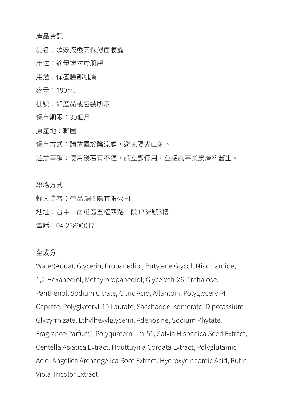 瞬效液態高保濕面膜露
