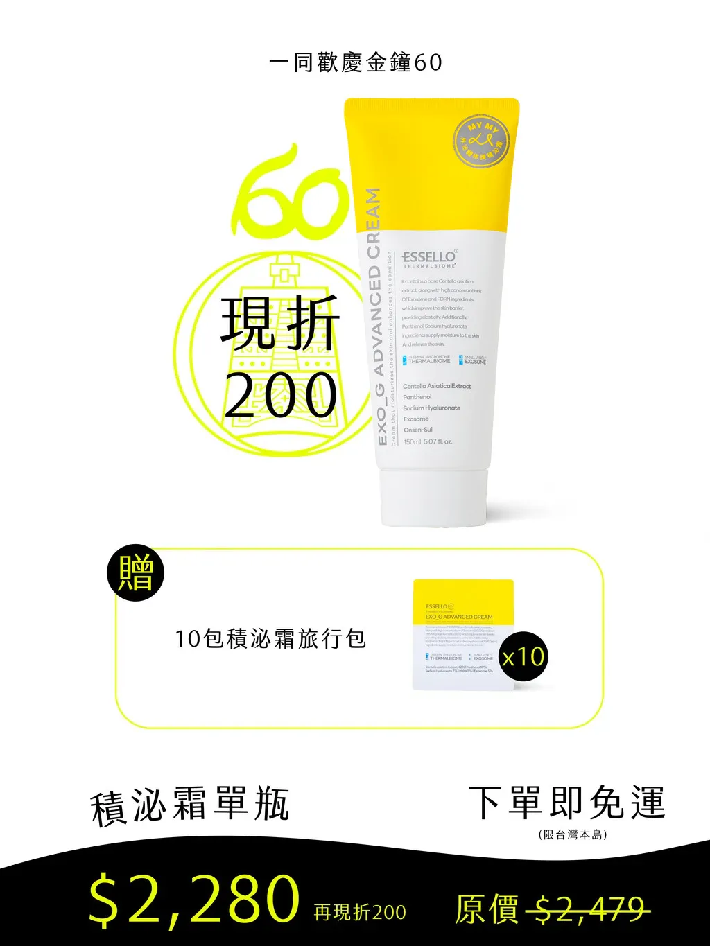 活動商品:歡慶金鐘60,買積泌霜台灣本島免運再現折200