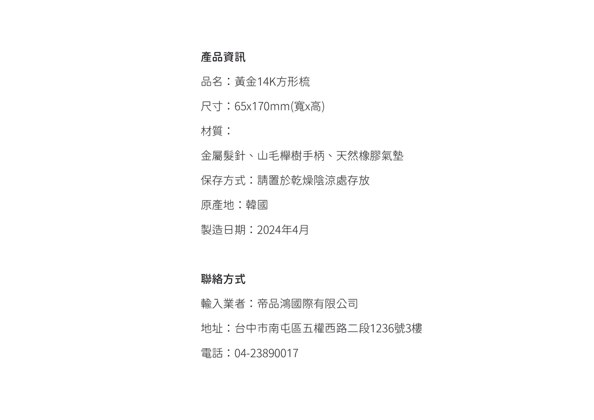 黃金14K方形梳